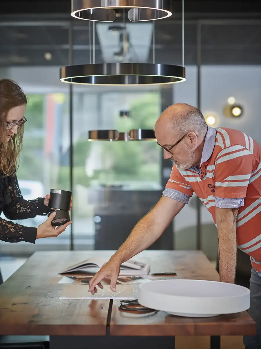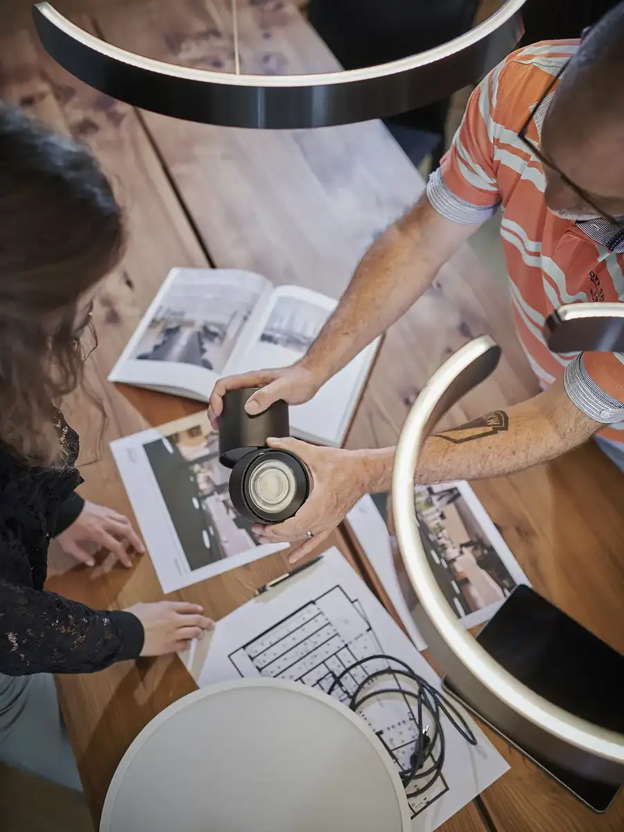 Licht prägt Räume und weckt Emotionen. Unsere Lichtgestaltung verbindet persönliche Bedürfnisse, Innenarchitektur, Möbel und Leuchten zu einem harmonischen Gesamtkonzept. Mit durchdachten Beleuchtungskonzepten schaffen wir die Basis für eine perfekte Lichtharmonie. Diese entwickeln wir gemeinsam mit Ihnen – entweder in unserer Lichtausstellung oder direkt vor Ort mit passgenauen Bemusterungen.