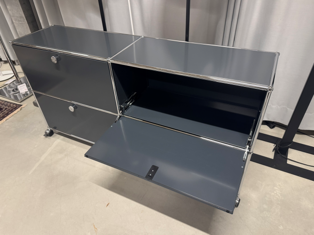 Regal auf Rollen, Farbe anthrazitgrau, Struktur verchromt, inkl. 4 Klapptüren, B 1500 x T 350 x H 780 mm